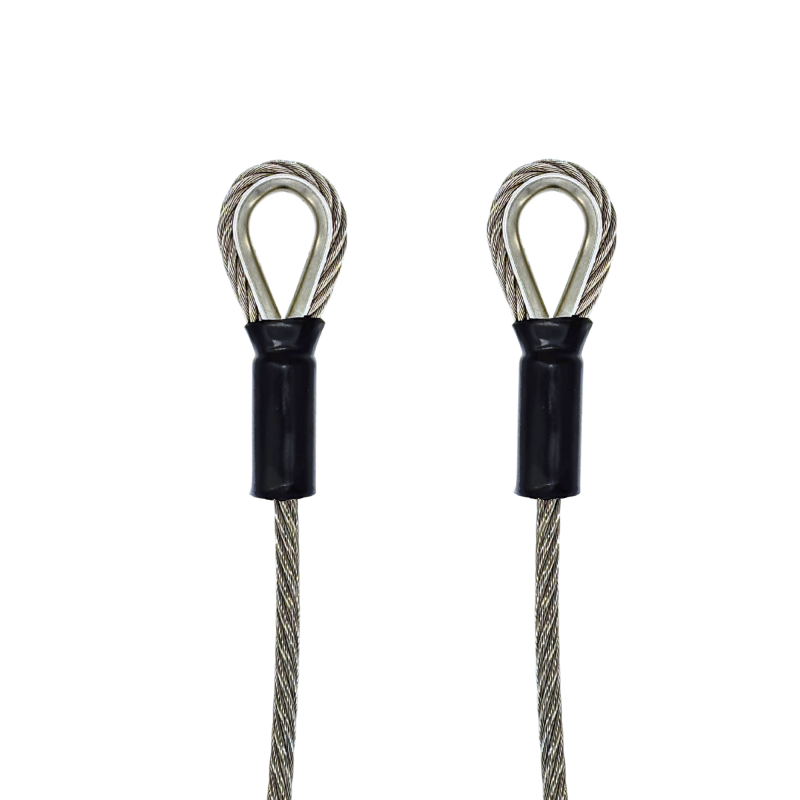 Élingue en câble inox AISI 316 diamètre 5mm, boucle avec cosse coeur d'un côté, terminaison libre de l'autre.