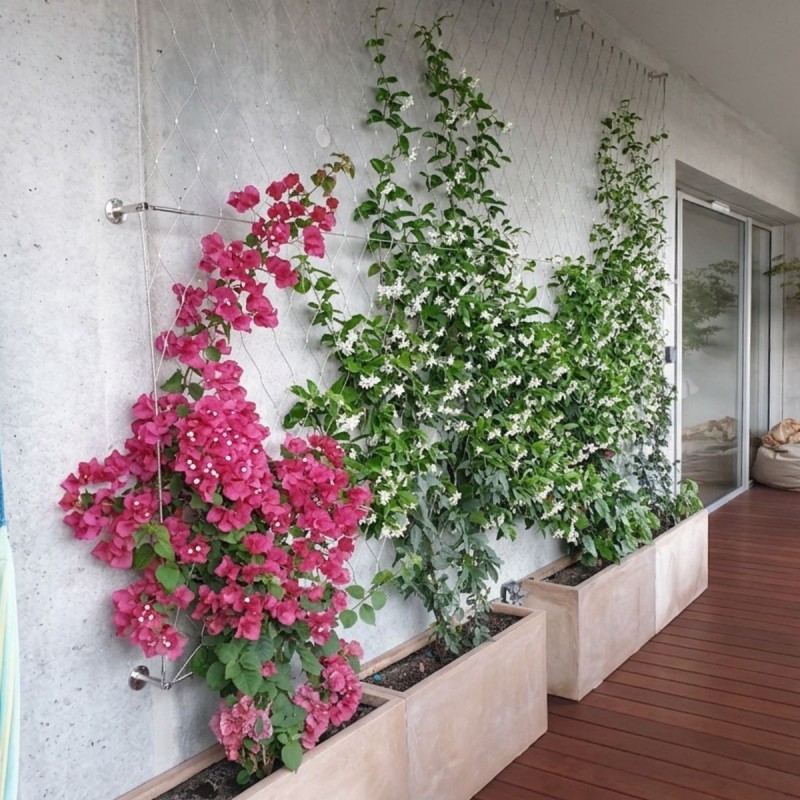 Le kit végétalisation filet INOX SYSTEM est conçu pour guider et soutenir les plantes grimpantes sur vos façades, clôtures, pergolas ou murs extérieurs. Fabriqué en acier inoxydable AISI 316 (qualité marine), résistant à la corrosion et aux intempéries, le filet à mailles losange serties offre une surface d'accroche optimale pour les végétaux à vrilles, les lierres, les clématites et toutes les espèces grimpantes. Aucun traitement de surface, aucune peinture : l'inox vieillit sans rouiller, pour une durabilité garantie sur la durée de vie de votre ouvrage.